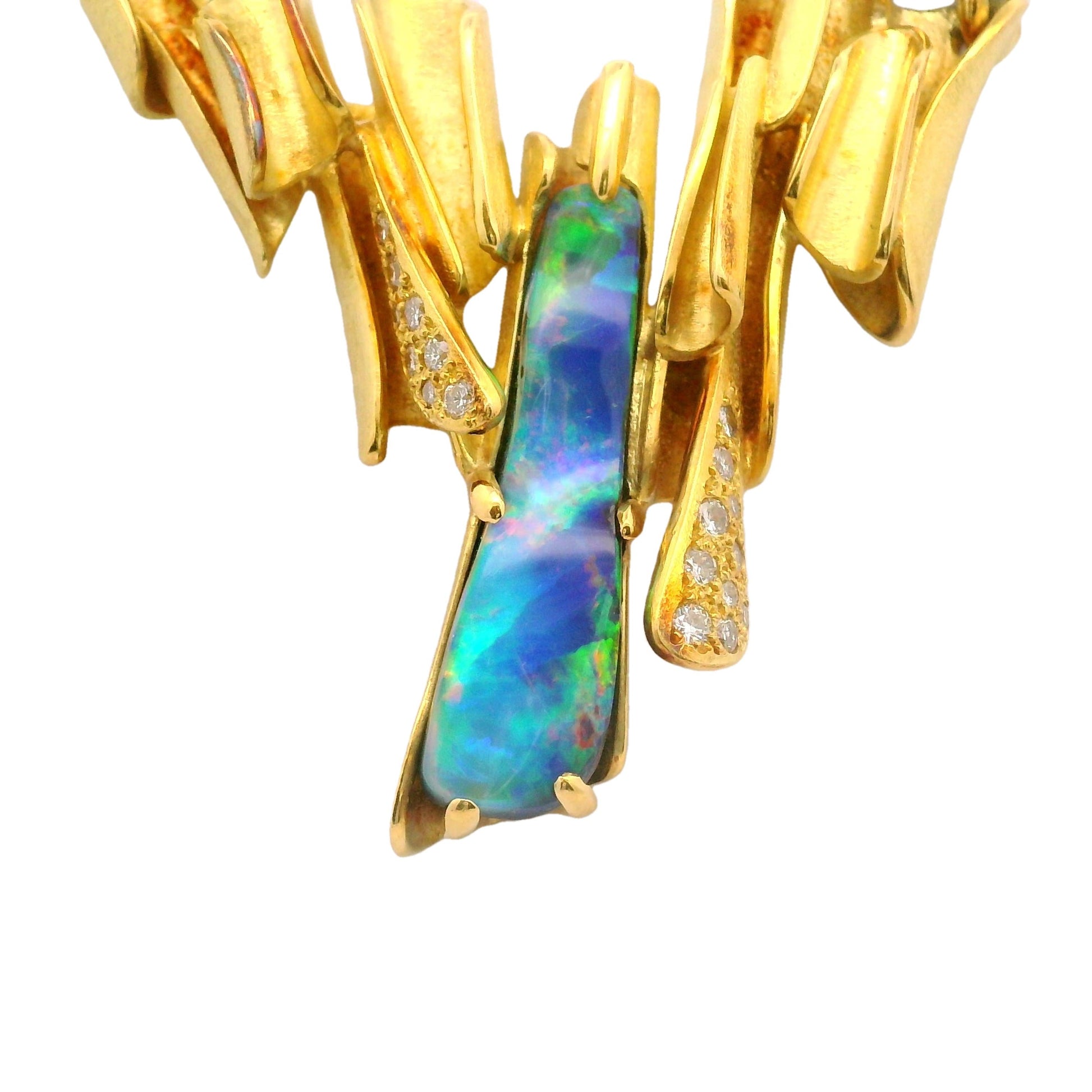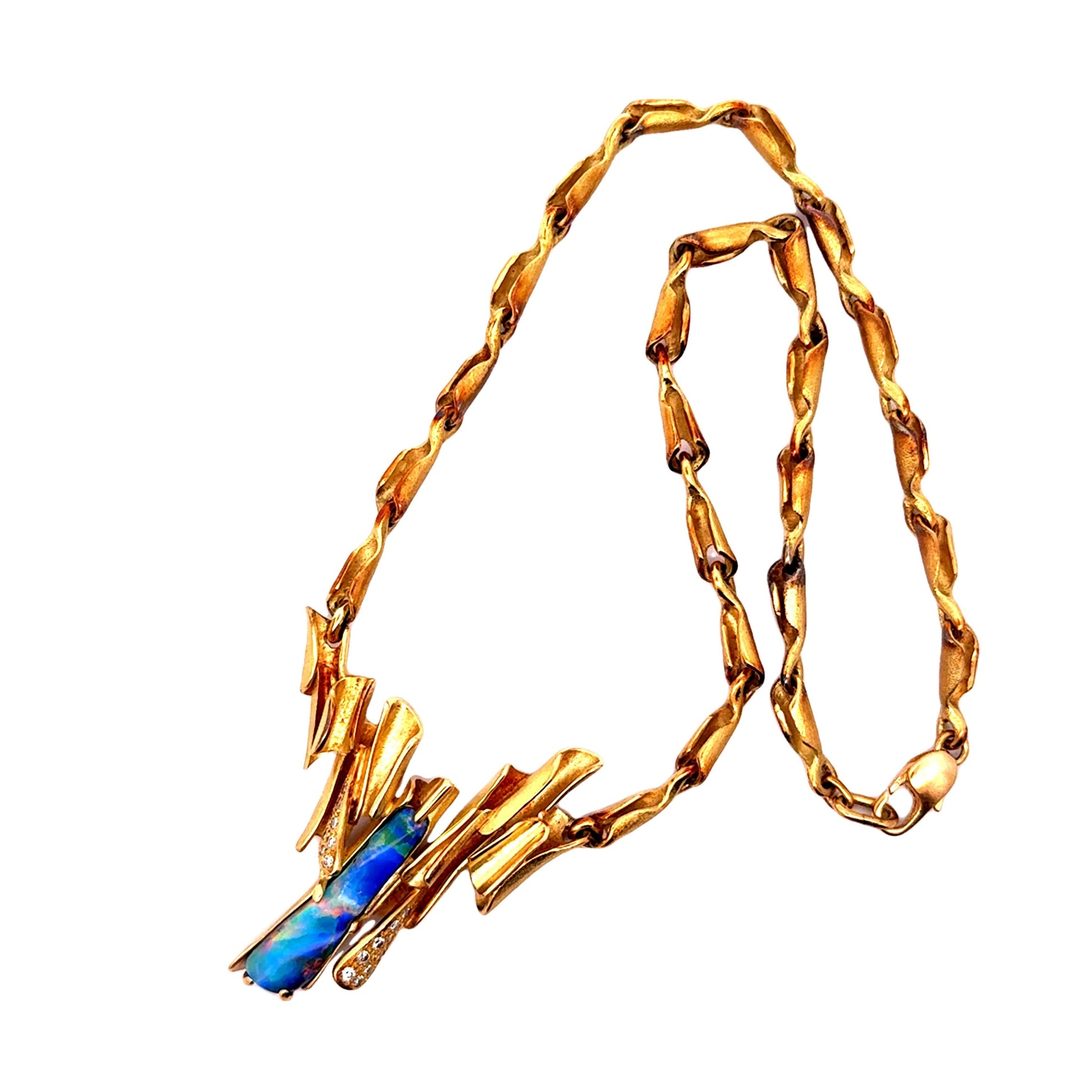 15 Carat Australian Boulder Opal Diamond 18k Yellow Gold Necklace