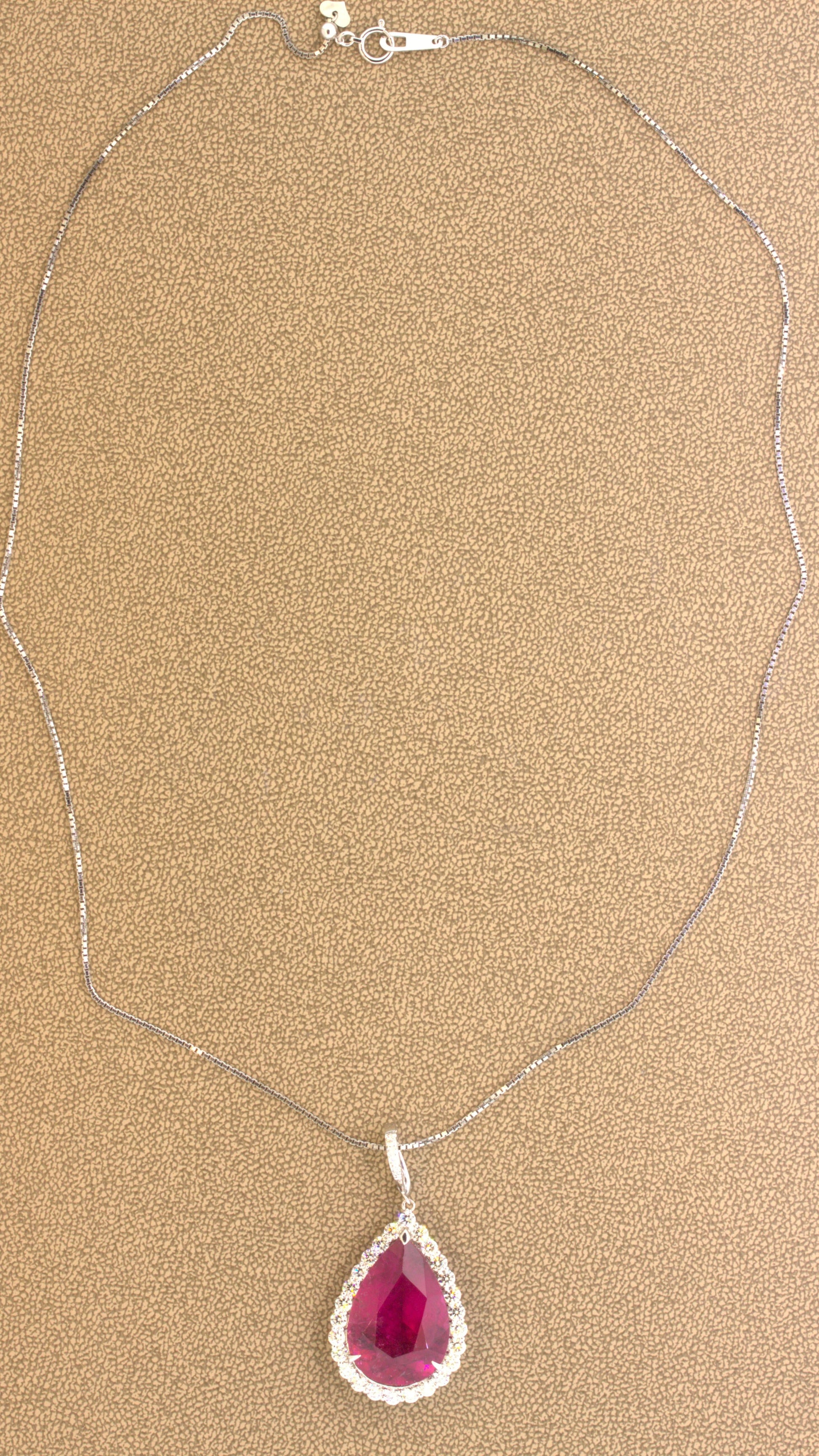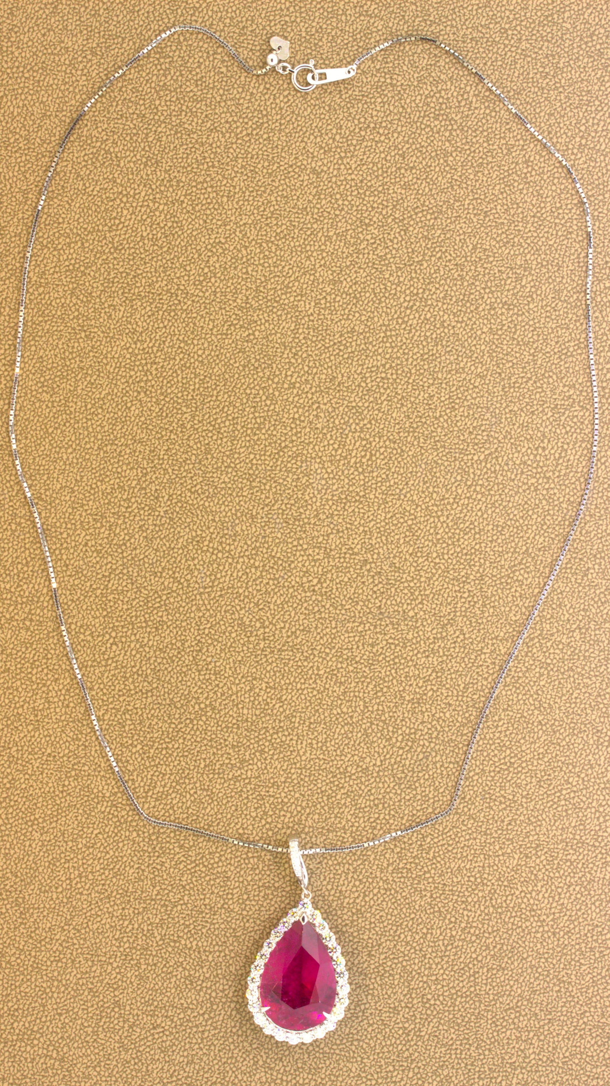 18.64 Carat Rubellite Tourmaline Diamond Halo Platinum Drop Pendant