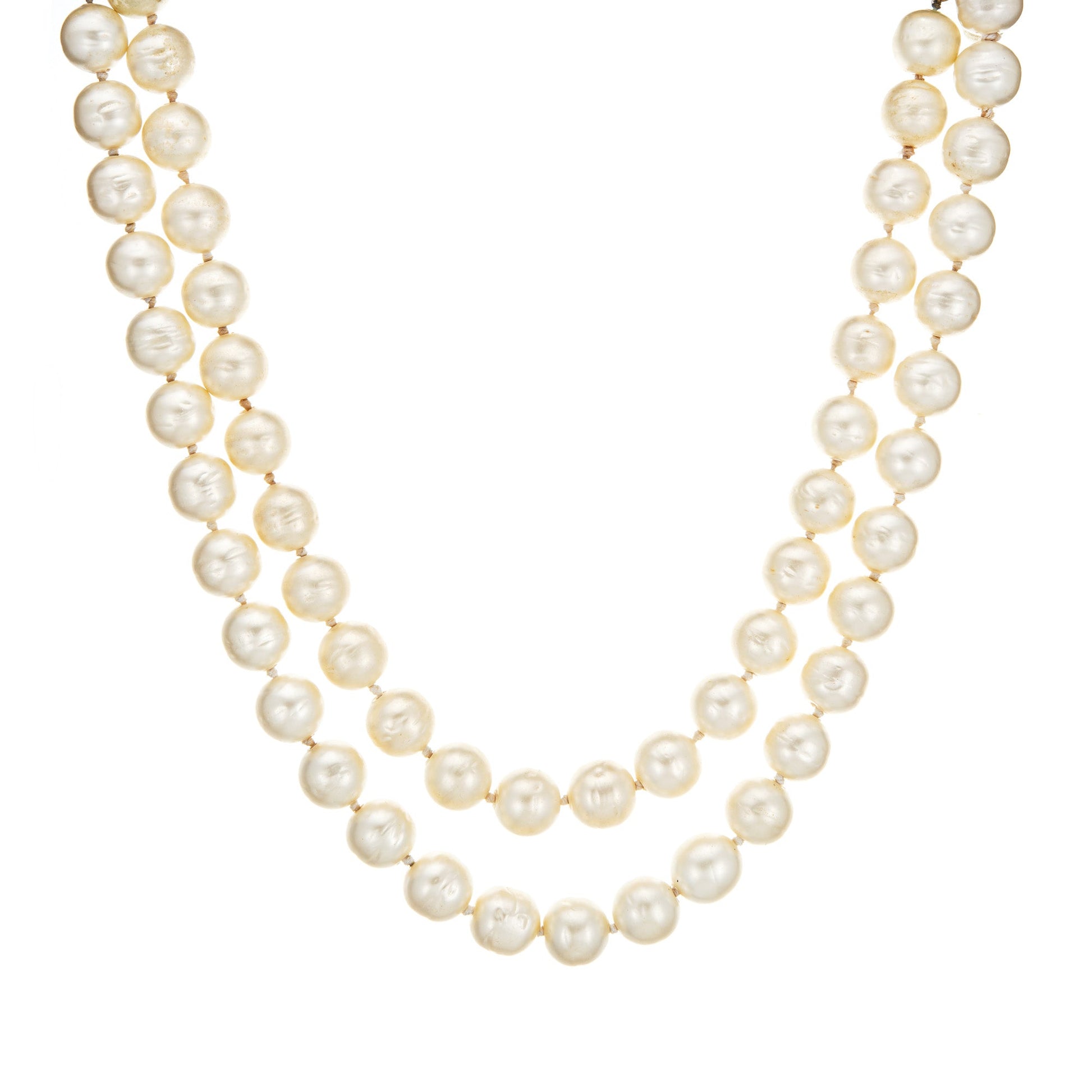 1995 Vintage Chanel Choker Necklace Double Strand 12mm Faux Pearls Gripoix Clasp
