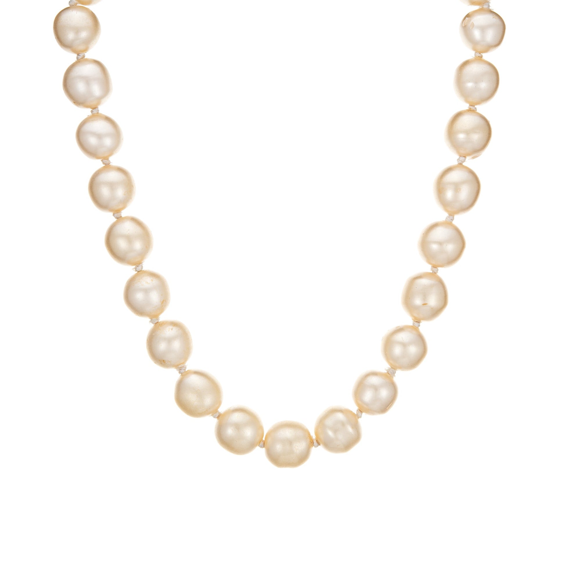 1995 Vintage Chanel Choker Necklace Large 14.5mm Faux Pearls Yellow Gold Tone