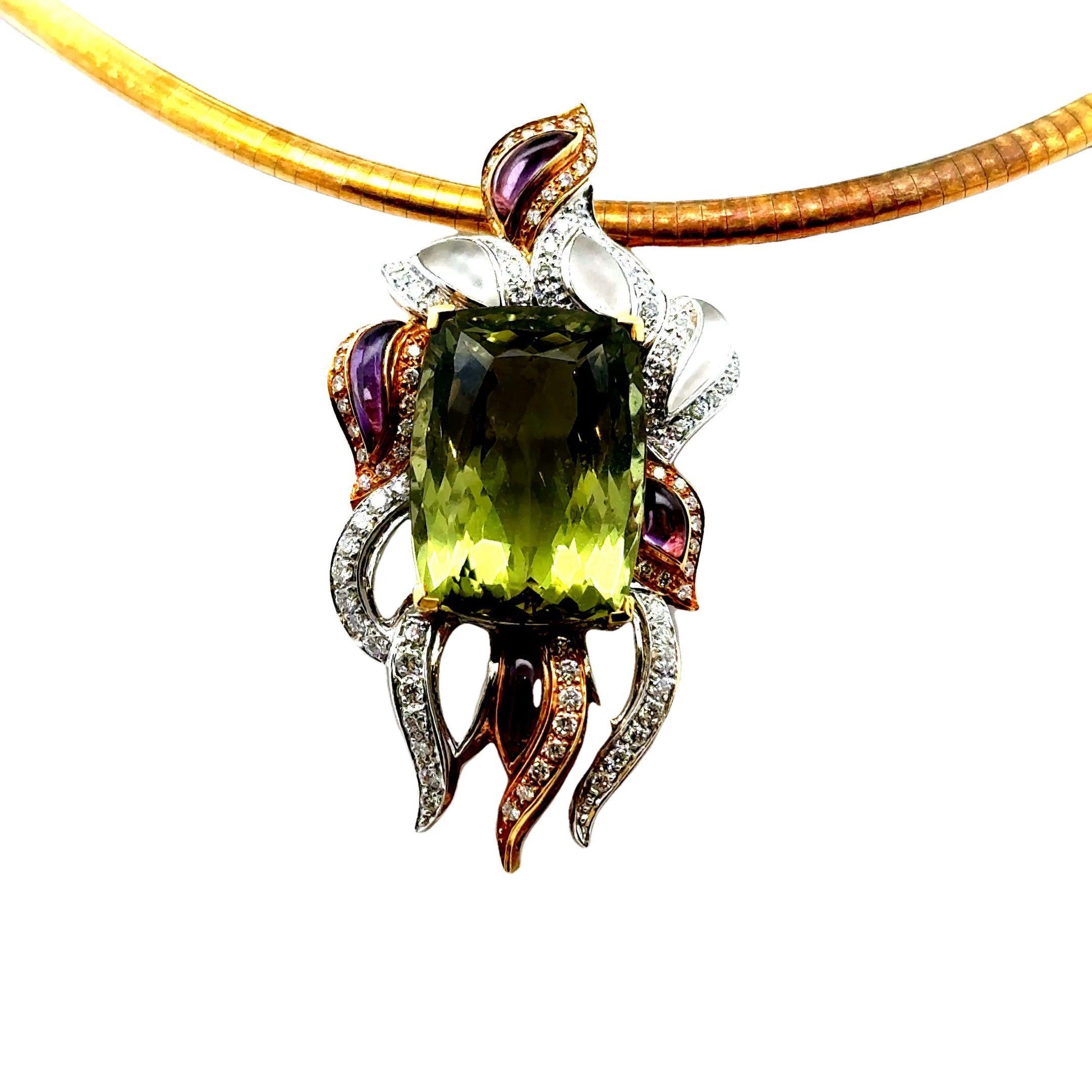 29.76 Carat Green-Beryl Diamond Moonstone Amethyst 18k Yellow Gold & Platinum