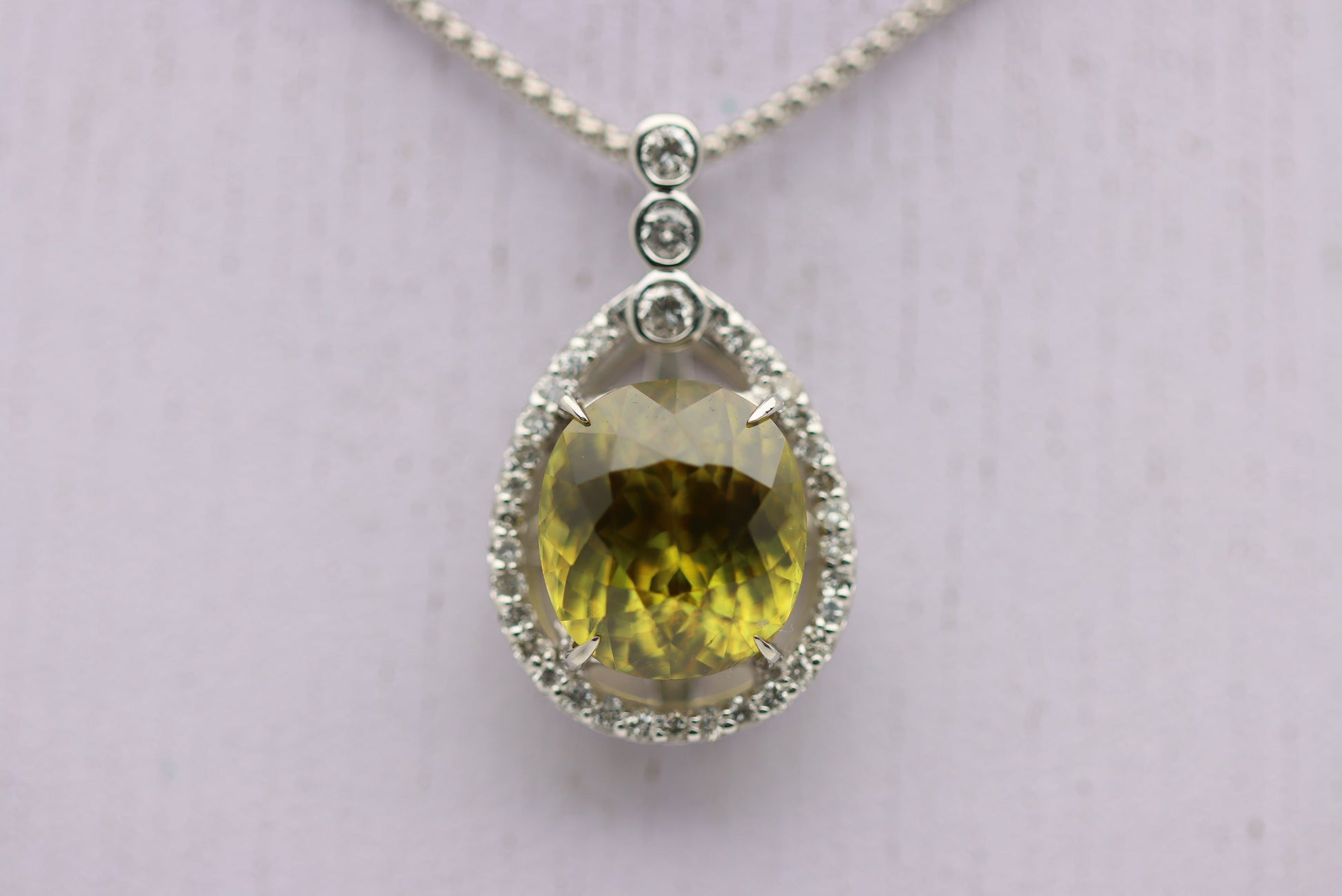 8.61 Carat Gem Sphene Diamond Platinum Pendant