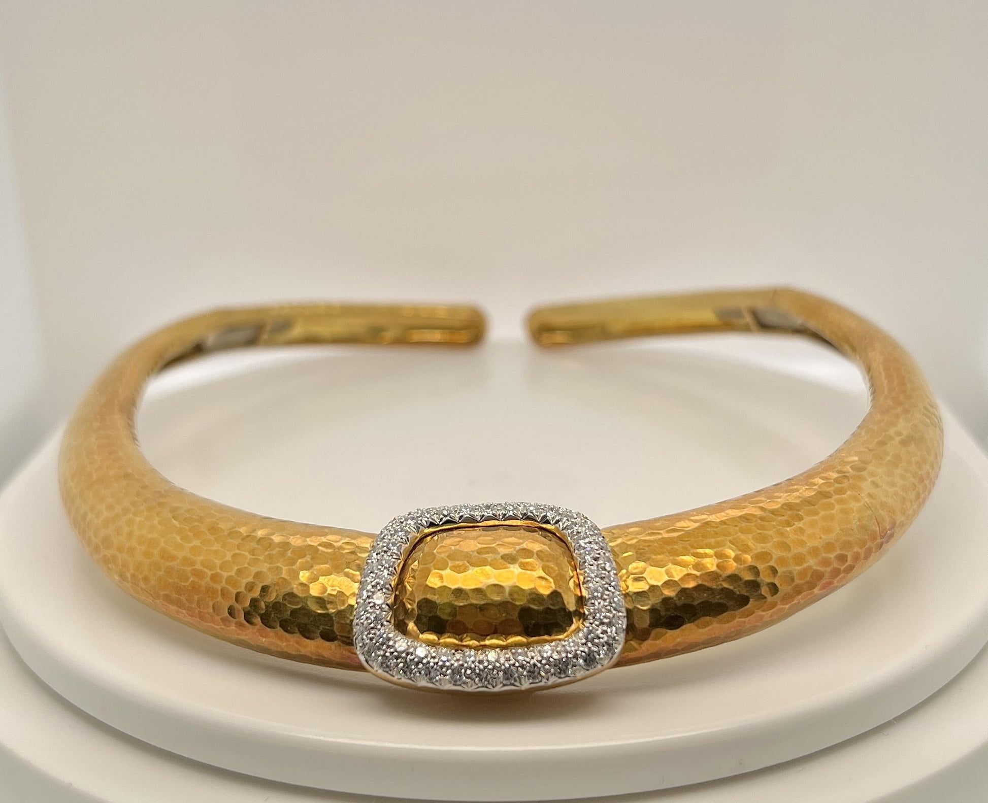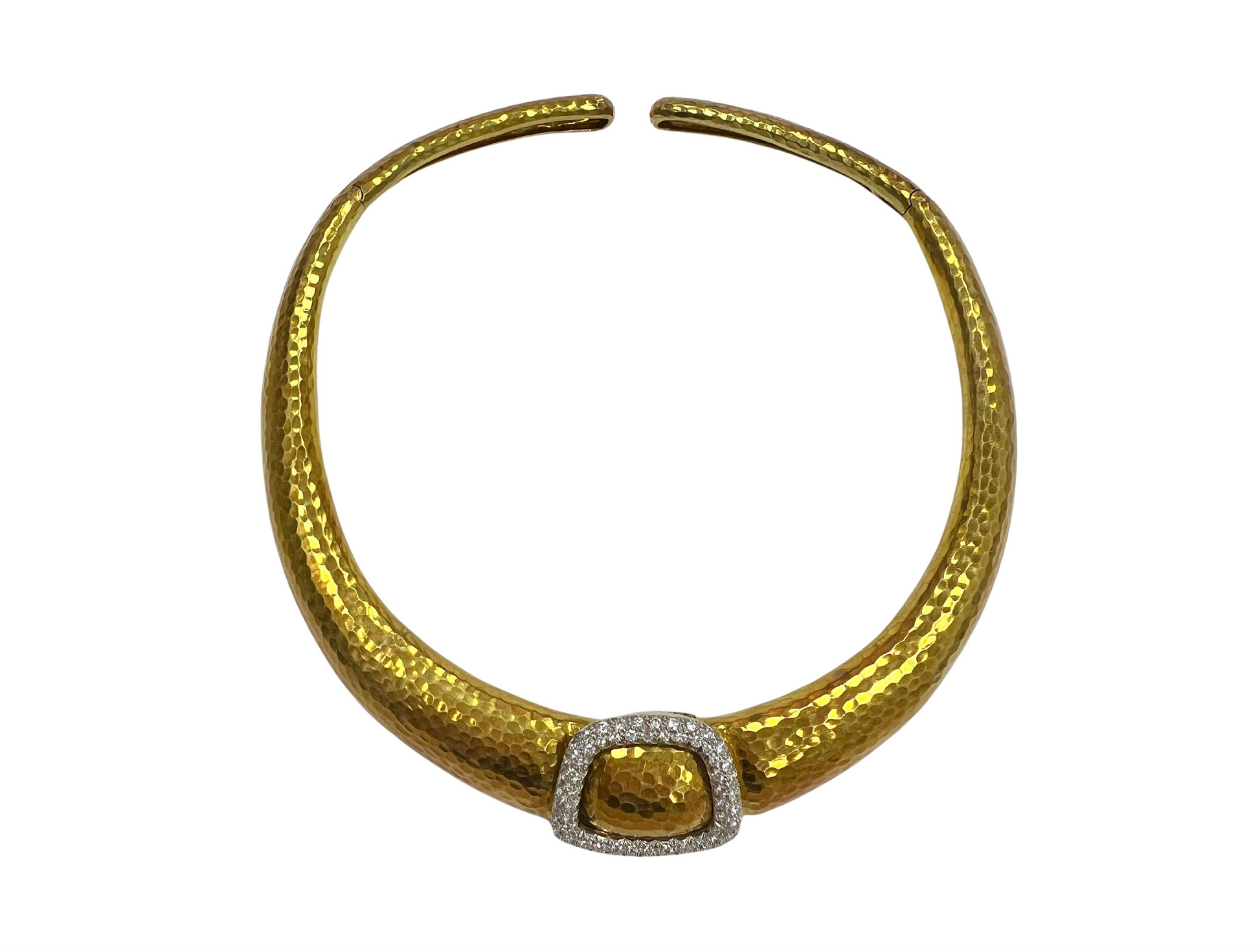 Andrew Clunn 1970s Diamond Hammered Gold Platinum Buckle Collar Necklace