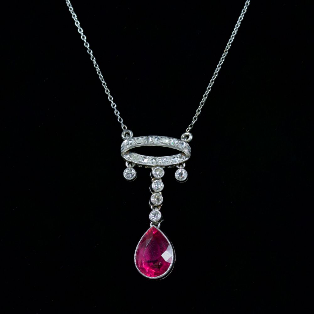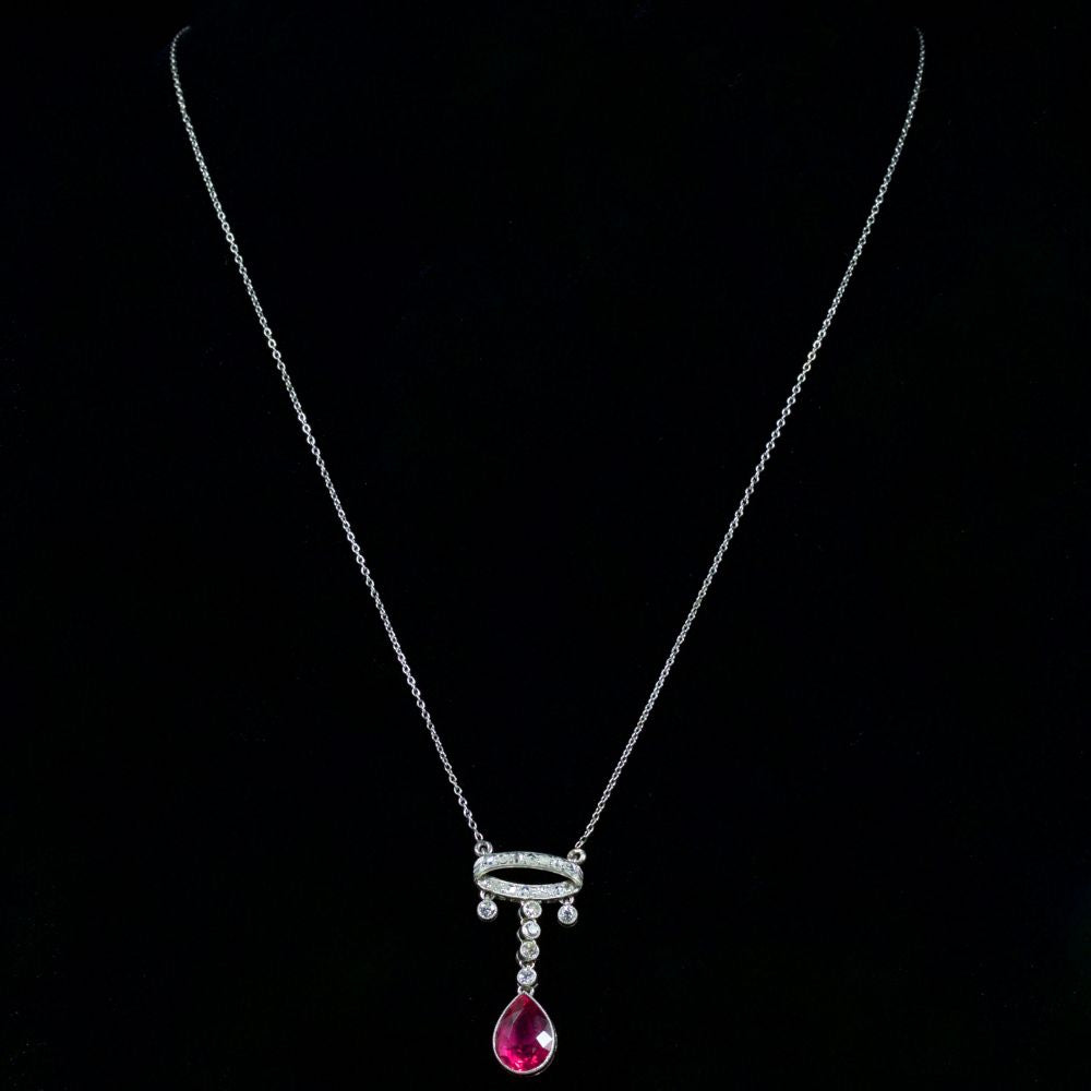 Antique Art Deco Pink Tourmaline Diamond Necklace Platinum Circa 1920