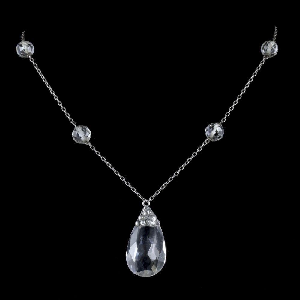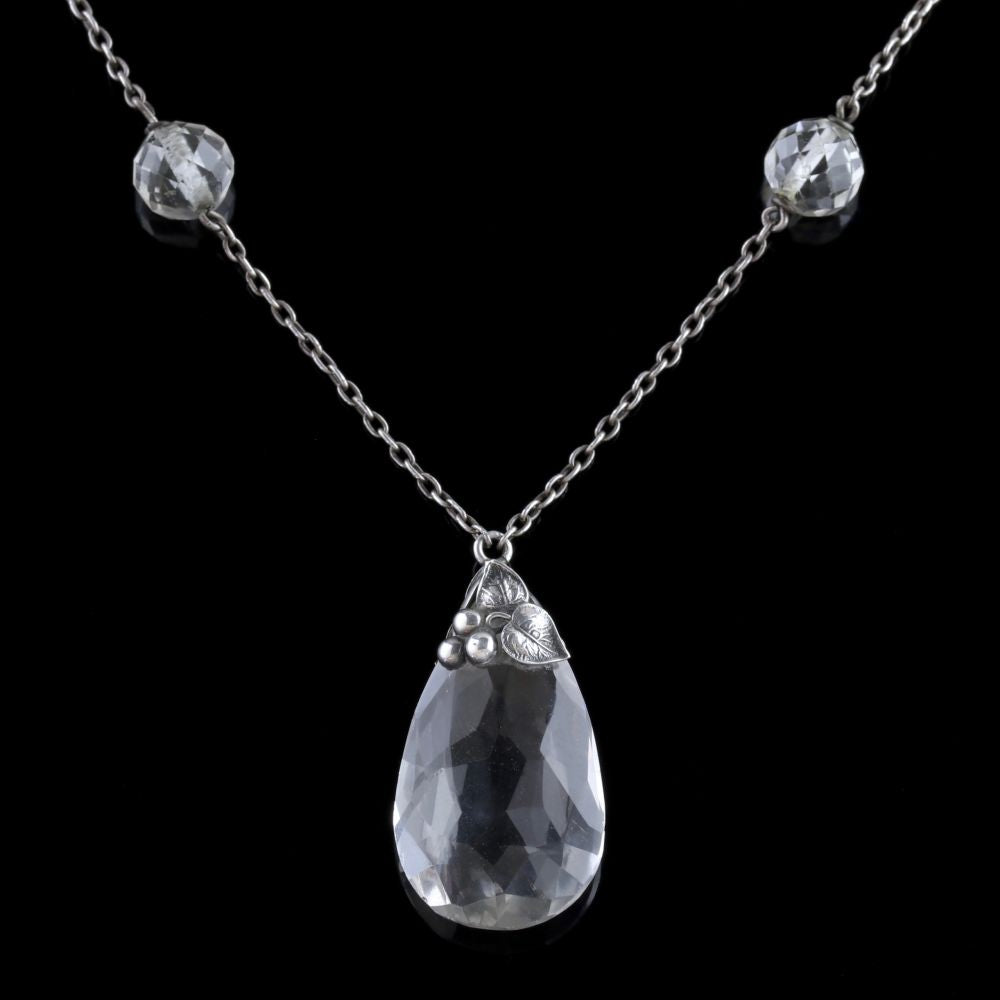 Antique Arts And Crafts Necklace Victorian Rock Crystal Pendant Circa 1900
