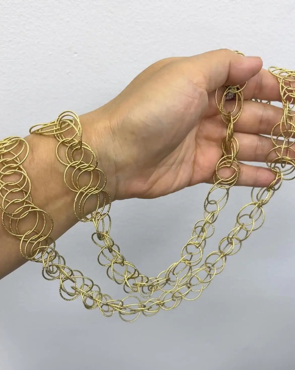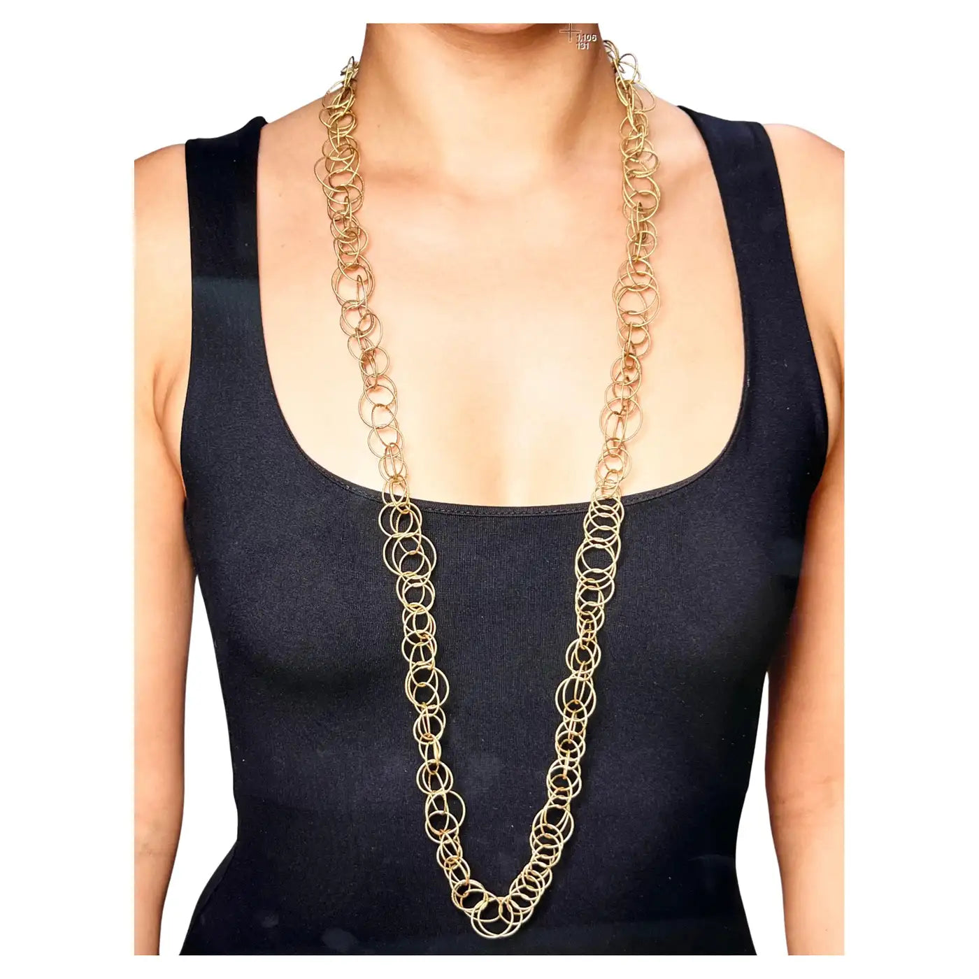 Buccellati Hawaii 18K interlocking textured gold rings of graduated size link necklace weight 108.9 g approx 38 long