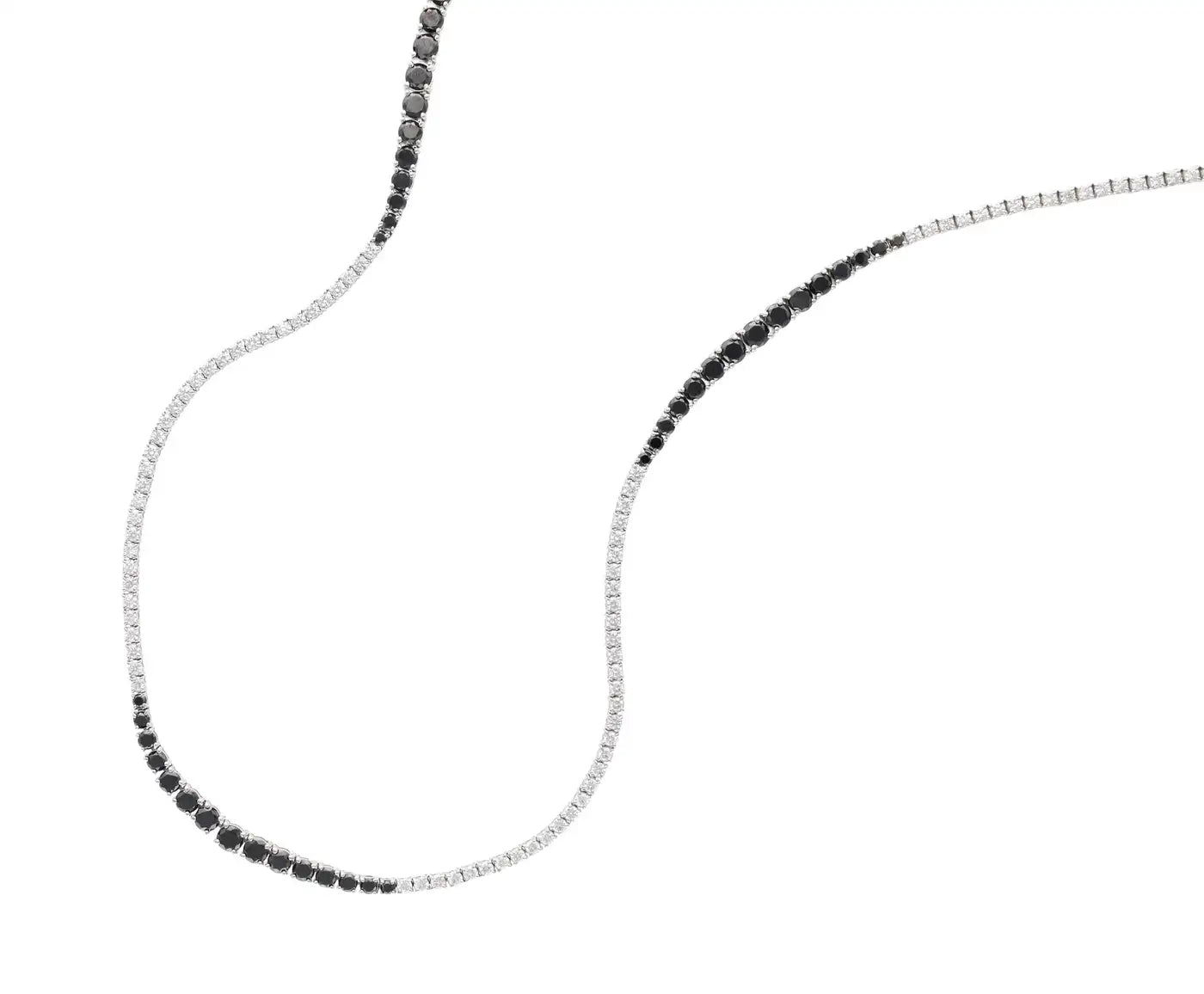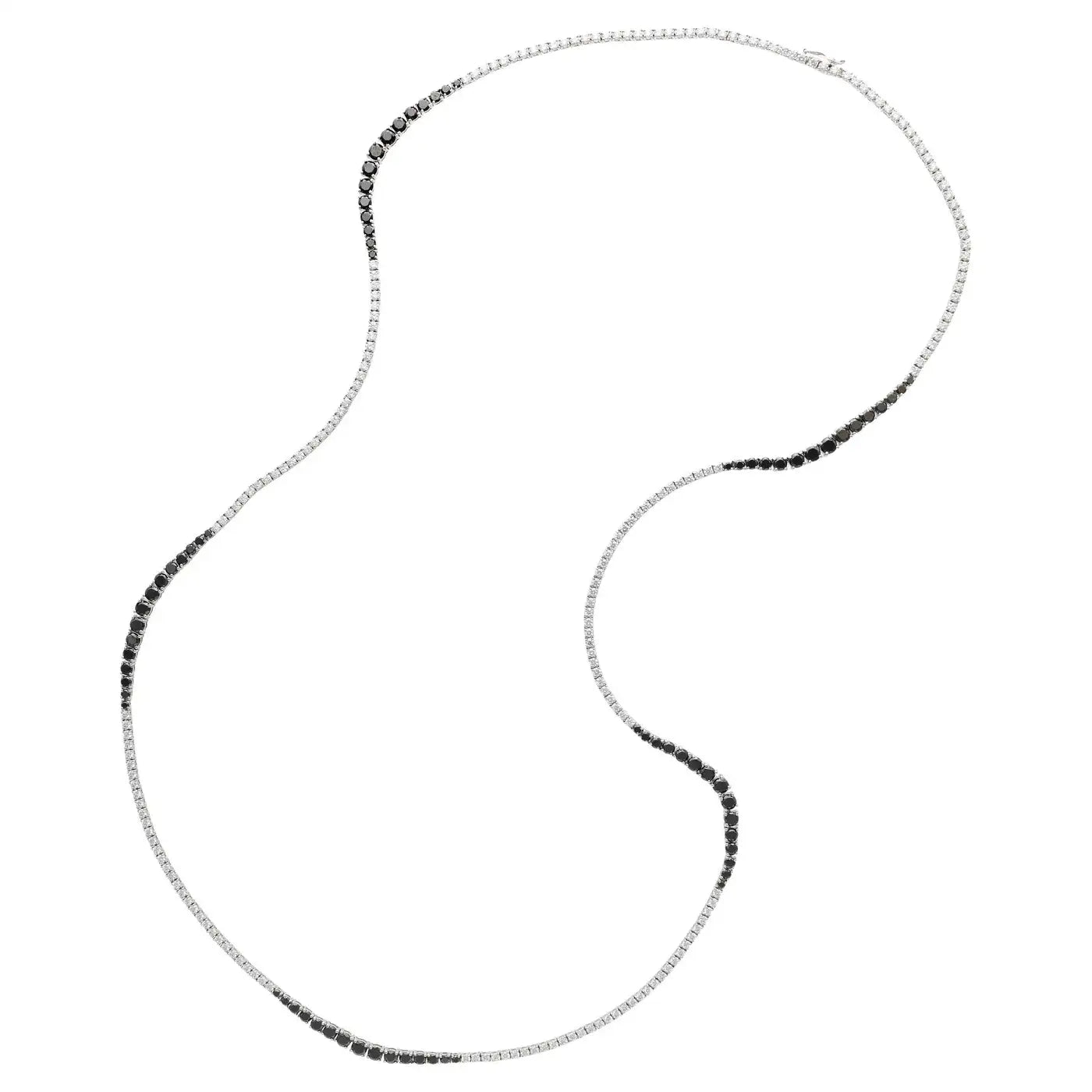A simple yet stunning necklace composed of round brilliant cut black and colorless diamonds.