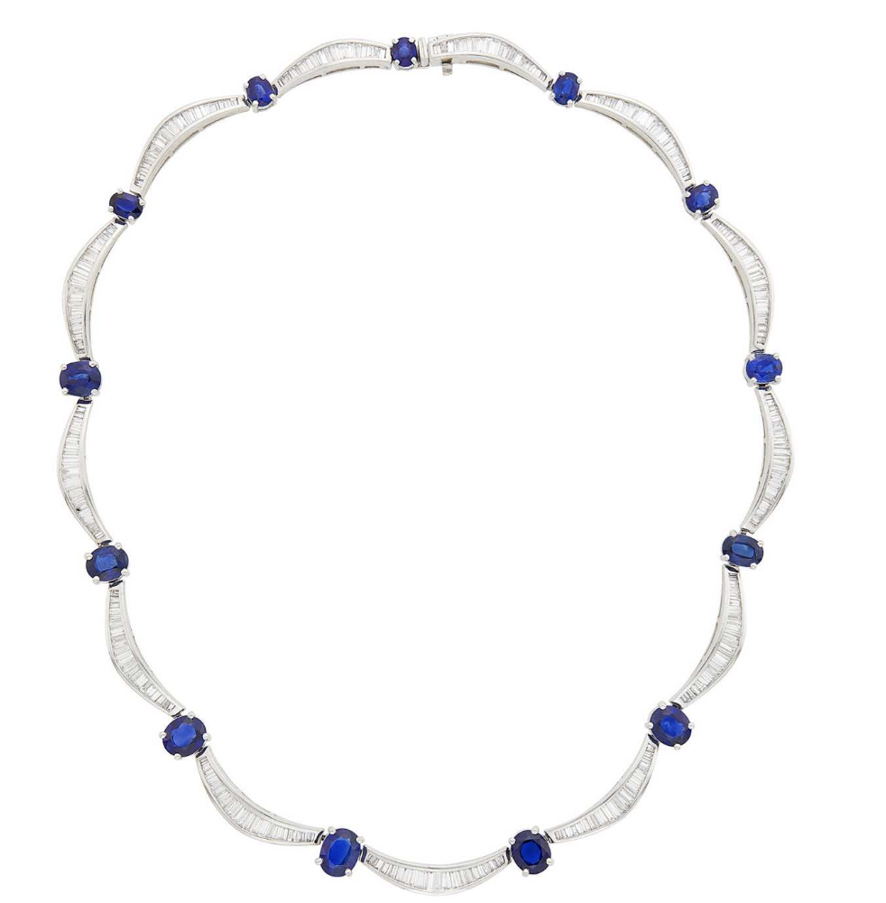 Platinum, Sapphire and Diamond Necklace