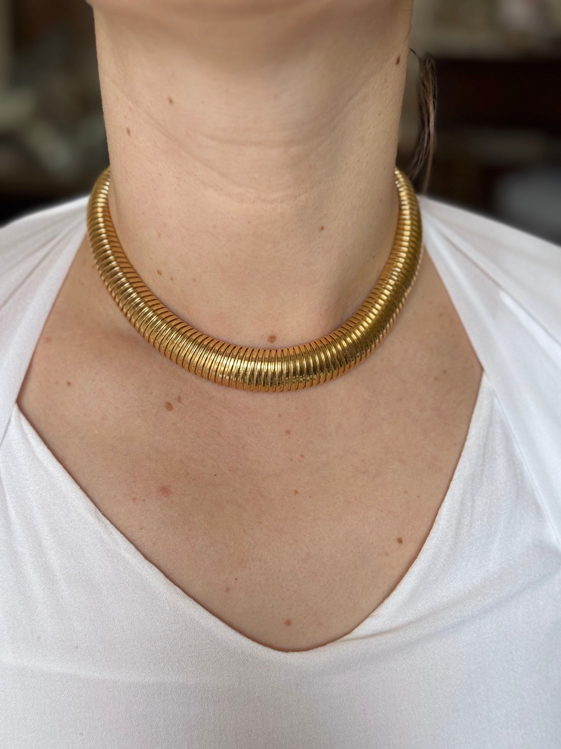 18k yellow gold tubogas style necklace by Tiffany & Co, circa 1950s.